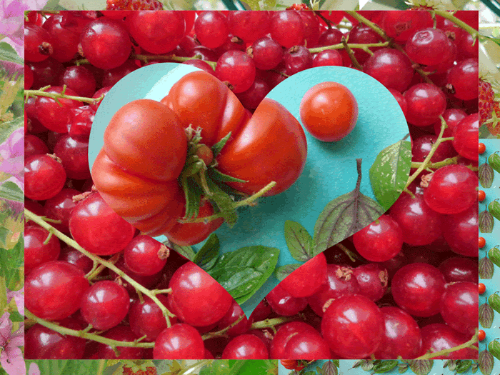Abbildungen von Eva Gottwald & Sabine Hoyer Fotocollage(E.G.) von FRUCHT und selbstgezogenen Tomaten 2013