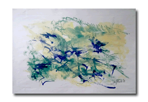 Dieser schöne Steindruck entstand 1993 in der Lithowerkstatt in der Wartenau. Mit großer Freude arbeitete ich mit den Lithosteinen. Zwei individuelle Strukturen vereinigen sich zu einem Bild. In meiner Studienzeit hatte ich oft die Eingebung, verschiedene Arten in Einklang zu bringen, und auch die Fülle ist in meinen Bildern immer ALLGEGENWÄRTIG.