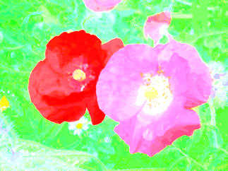 darin standen zwei Rosenbäumchen, davon trug das eine weiße, das andere rote Rosen: